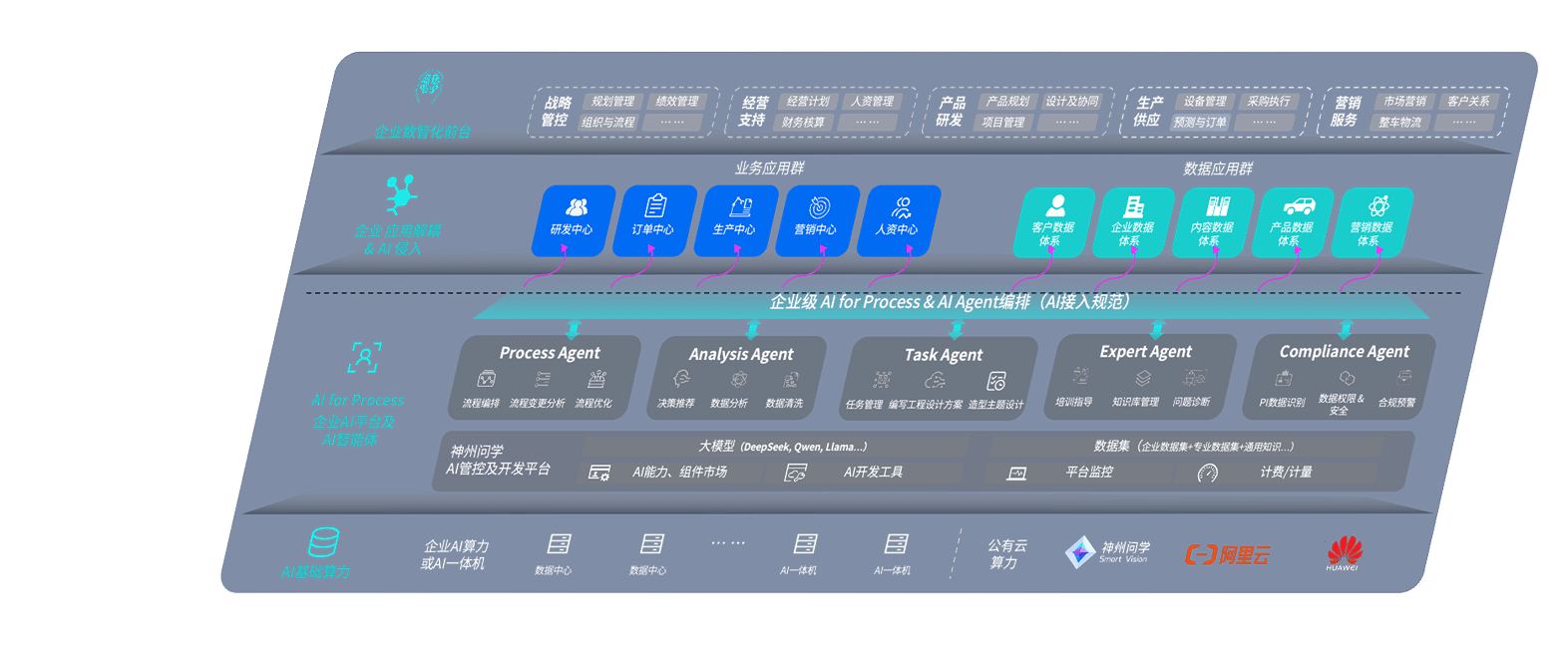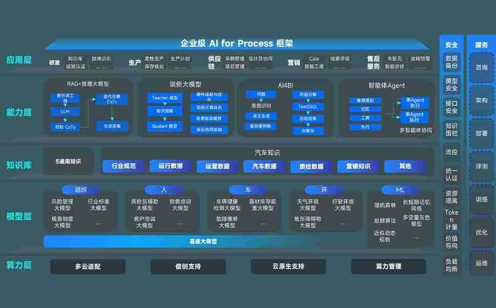 端到端的一站式AI工作空间深度融合了从企业战略规划到日常经营的全流程业务板块,,,定向解决车企内部领域多、、部门多、、、链条长、、场景碎片化等难题,,支持车企快速构建以AI为核心的生产力写作体系,,实现任务执行与AI能力的无缝集成与交互